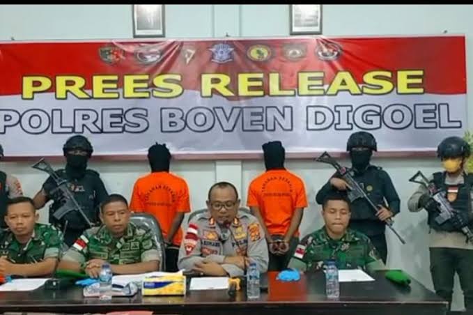 Security officials have arrested two highly suspected members of Papua Armed Criminal Group in Iwot Port, Sokango Village, Mandobo District, Boven Digoel, South Papua. From the hands of the two suspects, whom has the initials of AH (20) and MK (22), police have confiscated a firearm of Harrington and Richardson along with 18 ammunitions.
